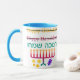 How do you spell Hanukkah, er Chanukah, or is it Hanukah, anyway? Obviously the only "right" way to spell it is in Hebrew! A fun design with "Happy Hanukkah" and "Happy Chanukah" crossed out and "Chanukah Sameach!" in Hebrew, with a chanukiah (menorah), dreidel, and gold gelt beneath.