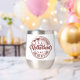 This cute wine glass tumbler has a funny red logo with two wine glasses and the text "Surviving MOTHERHOOD one sip at a time." She will love it! Her name or monogram is in matching red at one side.