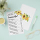 Guests answer questions about the bride, after fill in all their answers, the bride answers all questions and the guest will check on the right boxes which one they guess correctly and write the total of correct answers at the bottom line. The person with the most correct answers wins.