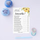 I was looking for a baby shower game that would be more of a challenge. I think this will be perfect for that and it’s simple to understand too. The graphics and words are easy to see. Everything looks good