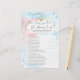 This baby shower game card features a script modern font on pink blue watercolor background, perfect for a gender reveal party.