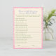 The game card comes in a fun colour scheme of pink, dusty blue, green, and lavender on a buttercream coloured background.