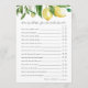 Test your guests’ knowledge with this charming “How Well Do You Know the Bride?” game card, featuring elegant watercolor lemons and lush greenery. Perfect for bridal showers, bachelorettes, or engagement parties. This stylish and fun game is fully editable and available printed or as a digital download. A lovely addition to any citrus or garden-themed celebration from Redwood & Vine Design Co.