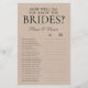 This How Well Do You Know The Brides? LGBTQ Bridal Shower Game sheet will bring a lot of fun and laughter to your wedding shower! The page is both elegant and modern. Its simple design with black fonts on craft paper is perfect for any wedding. To make this game your own simply select Personalise this template and type in the brides' names and initials.
