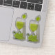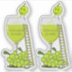 A green grape showing how wine is made by peeing in a wine glass. Funny and silly illustration. Light green / lime plaid background. Wine Glass with a ladder so the grape can climb.