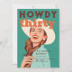 A fun 30th birthday party invitation template for women with a retro Western theme, featuring a poster style sketch of a beautiful woman wearing a cowgirl hat, in a flirty pose, with the title "howdy 30", with a vintage orange, teal and terracotta colour scheme. A fun 30th birthday invite for a woman on her thirtieth birthday.