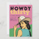 A fun 30th birthday party invitation template for women with a retro Western theme, featuring a poster style sketch of a beautiful woman wearing a cowgirl hat, in a flirty pose, with the title "howdy 30", with a vintage pink, green and yellow colour scheme. A fun 30th birthday invite for a woman on her thirtieth birthday.