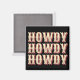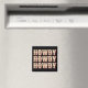 Retro style cowboy "Howdy Howdy Howdy" text design with striped letters in yellow, red and beige colours