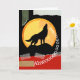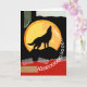 Ahwooo Happy Howl-o-ween with howling wolf, full moon, and art collage look with torn papers and tape. Happy Halloween greeting card. Art, image, and verse copyright © Shoaff Ballanger Studios, 2022.