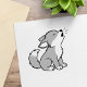 Cute cartoon wolf pup is sitting on its haunches and howls with its head up.