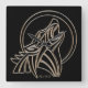 Howling Lone Wolf Elegant Black Silver Grey Square Wall Clock