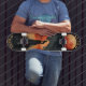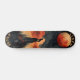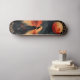 This skateboard design captures the essence of wilderness with a lone wolf howling atop a rugged peak, silhouetted against a fiery, moonlit sky. With a dramatic colour palette of deep midnight blue, intense oranges, and dark shadows, this piece brings a nostalgic, retro mid-century feel, evoking freedom, strength, and the untamed spirit of nature. Inspired by 1950s travel posters, this artwork appeals to skaters with an adventurous soul, connecting with the timeless beauty of the wild. Ideal for those who resonate with themes of independence and natural grandeur.