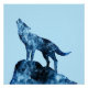 Howling Wolf blue sparkly smoke silhouette blue Poster