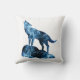 Howling Wolf blue sparkly smoke silhouette Cushion