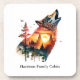 Howling wolf double exposure sunset personalised coaster