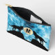 Howling Wolf Full moon blue black Custom Monogram Accessory Pouch