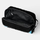Howling Wolf Full moon blue black Custom Monogram Toiletry Bag. Cool fashion accessory - bags for him. Abstract geometric winter snowy blue and white smoke with black wolf silhouette. Personalise with your custom initial and name.