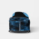 Howling Wolf blue sparkly smoke silhouette geometric abstract. Personalise with your custom name initial. Cool fashion accessory bag for him. Create a unique and personalised backpack with a custom touch!