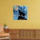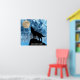 Howling Wolf full moon blue black Custom name Poster. Personalise with your custom text. Howling Winter Wolf snowy blue smoke Abstract Poster Wall Art Décor. Abstract geometric winter snowy blue and white smoke with black wolf silhouette.