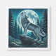 A beautiful image of a gray wolf in a forest howling at a full moon