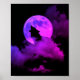 foggy night purple moon howling wolf