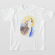 100% cotton so perfect for summer, It is a nicely designed t-shirt, the fabric is soft and the seams finished well, the body of the t shirt has no side seams. I bought a medium size for my two grandsons, aged 9 and 8 it will be slightly big on them but I would rather that than too small