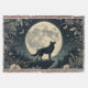 A versatile piece that could be used as a blanket or wall tapastry showcases a majestic wolf howling beneath a moonlit sky, surrounded by detailed forest floral motifs. Woven fabric with fringed edges, it’s perfect for adding a cozy, boho rustic touch to your space or as a stunning wall hanging. Ideal for wildlife lovers, cabin decor, or anyone who appreciates the call of the wild.