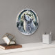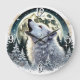 This captivating image features a majestic white wolf howling beneath a luminous full moon. The wolf's fur is intricately detailed, showcasing its wild and untamed beauty. Surrounding the wolf are snow-covered evergreen trees, adding a touch of winter magic to the scene. The night sky is dotted with stars, enhancing the mystical and serene atmosphere. This artwork beautifully captures the essence of nature and the wild, making it a perfect addition to any clock design.