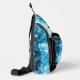 Howling Wolf Winter snowy blue black Custom name Sling Bag. Cool fashion accessory for men. Abstract geometric winter snowy blue and white smoke with black wolf silhouette.