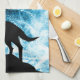 Howling Wolf Winter snowy blue smoke Abstract Tea Towel