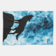 Abstract geometric winter snowy blue and white smoke with black wolf silhouette.