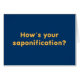 A fun design for people who make soap, these t-shirts and other items read "how's your saponification".