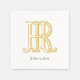 HR monogram or RH monogram or logo vintage antique initials on cocktail napkin in gold.