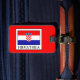 I was happy with the acrylic tag but it came with a thin leather strap to attach the tag to luggage (like a cat collar). I replaced the strap with a metal ring off of a key ring as the leather strap would come undone or break easily as luggage is sometimes handled without much care by airlines. Printing is great. Colours and positioning of the design I put on the tag were perfect. Very pleased.