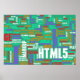 HTML 5 Web Development Language as Concept in a Word Cloud with colours of Red White Blue and Purple
