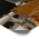 The Hubble Space Telescope stands tall in the cargo bay of the Space Shuttle Atlantis following its capture and lock-down in Earth orbit.
