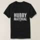 This groom’s tee matches the “Wifey Material” bride shirt. It reads “Hubby Material” in crisp white letters, with a small bow tie icon for flair. Perfect for engagement parties or couple’s photos, this shirt is a fun way for the groom-to-be to announce he’s the one.
