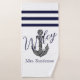Nautical White and Navy Blue Anchor Beach Wedding Honeymoon Beach Towel. Modern calligraphy script Hubby over an Anchor and personalised with Mr. ... name. : Nautical Anchor Beach Towel.. Elegant Hubby Nautical Towel