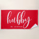 Hubby Red And White Newlywed Groom Beach Towel