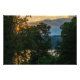 The setting sun reflects off the Hudson River and clouded sky creating silhouettes of trees in the foreground.
