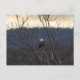A bald eagle, perched in a tree, beside the Hudson River. Late day sun and clouds.