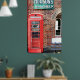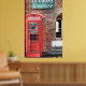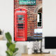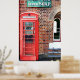 A photograph of a rusty old vintage sign advertising Hudson's Super Soap above an old fashioned British style red phone box.