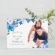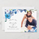 Elegant pastel shades of blue floral wedding thank you photo cards designed to be quickly and easily customised to your event specifics.