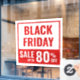 Huge Black Friday store sale window cling in red and white for a retail location or business. Featuring modern bold typography to make potential customers see it from afar. The example is 50x50 inch but you can choose any size you need.