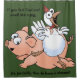 Huge pig and rooster on a shower curtain. Exuberant and slightly manic cartoon of a pig and chicken. "If you feel fowl and smell like a pig, it's probably time to take a shower!"