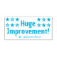 This encouraging rubber stamp design features the motivating feedback message "Huge Improvement!" and a custom teacher's, educator's or tutor's name. It also features decorative star shapes. It could be used by a school teacher, educator, instructor, or tutor when grading student work, to acknowledge that a student has done an exceptional job.