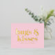Hugs & kisses pink white modern bold typography foil holiday postcard