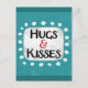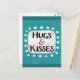 "Hugs & Kisses" is a cute inspirational or motivational quote with a white accent shape surrounded by white textured whimsical dots.