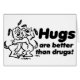 Hugs are better than drugs! Cute retro cartoon design endorsing a drug free world.