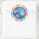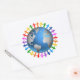 The colours of the LGBTQ flag are represented in the people who are holding hands around the Earth. Acceptance and love for all.